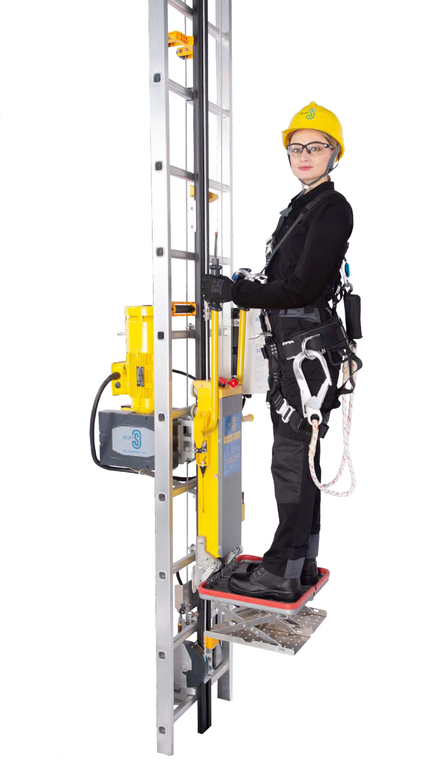 A su vez, contaremos con productos de la marca 3S LIFT, en este caso el Climb Auto System. Se trata de una plataforma de subida a nacelle que permite al técnico alcanzar la parte más alta de la torre eliminando el esfuerzo físico y mental (con los riesgos que eso conlleva).