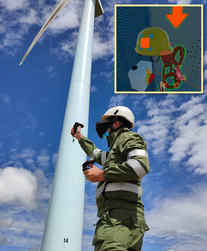 En primer lugar, se va disponer de una zona de inmersión de Realidad Virtual enfocada en escenarios de formación específica en el sector eólico (maniobras en celdas de alta tensión, extinción de incendios, etc.).